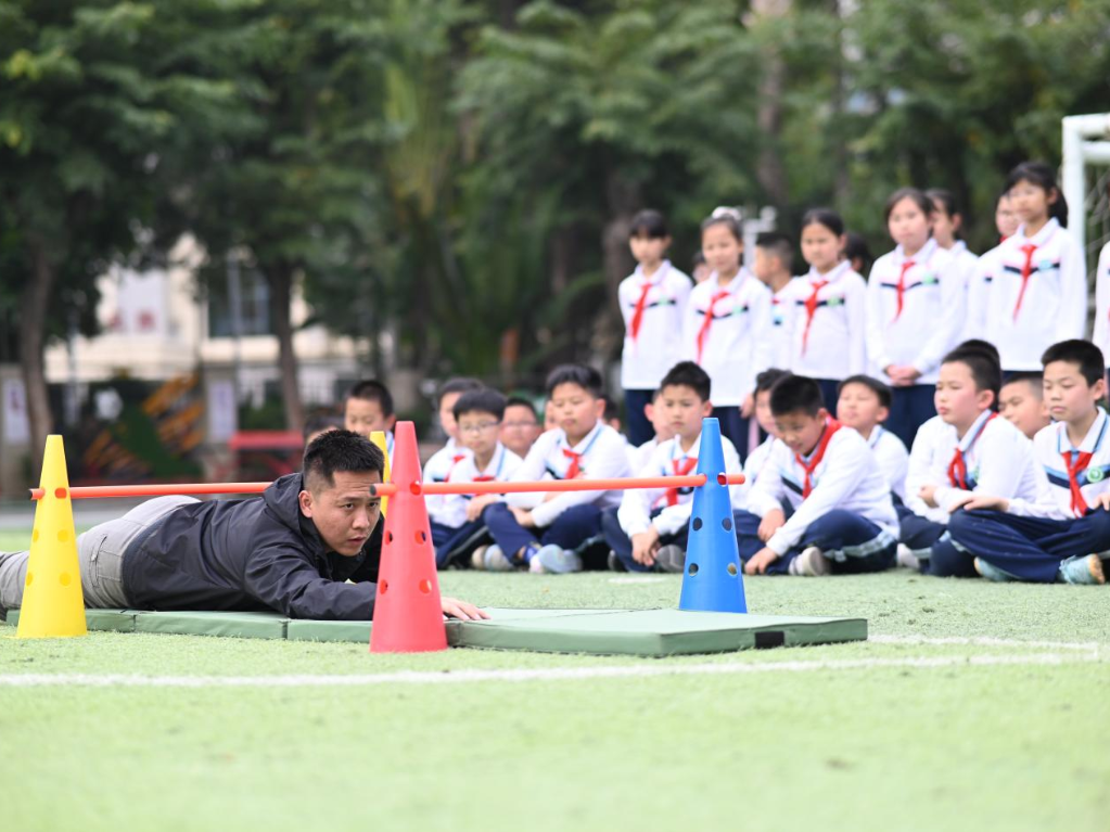 “兵教师”陈翼桁在学校开展特色教学。蔡家榕 摄