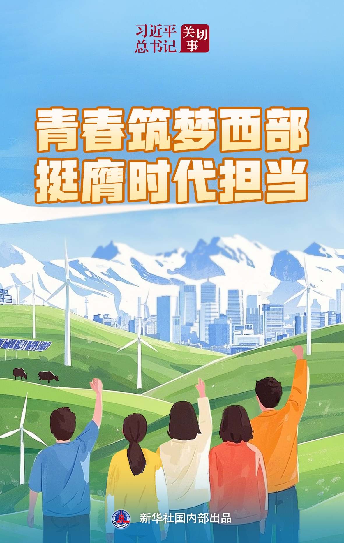 在总书记指引下,新时代青年挥洒青春活力、汇聚西部发展强劲动力,让青春之花在西部热土绚烂绽放。