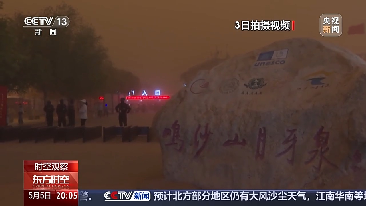 5月3日18时许,敦煌市出现能见度小于700米的强沙尘暴天气,市区最大风力9级,雅丹地区最大风力12级。18时53分,敦煌市升级发布沙尘暴橙色预警。当地随即启动应急预案,紧急叫停景区内观光车、骆驼骑行、滑沙等娱乐项目,并取消当晚的万人星空演唱会,同时组织安保力量对游客进行紧急疏散。