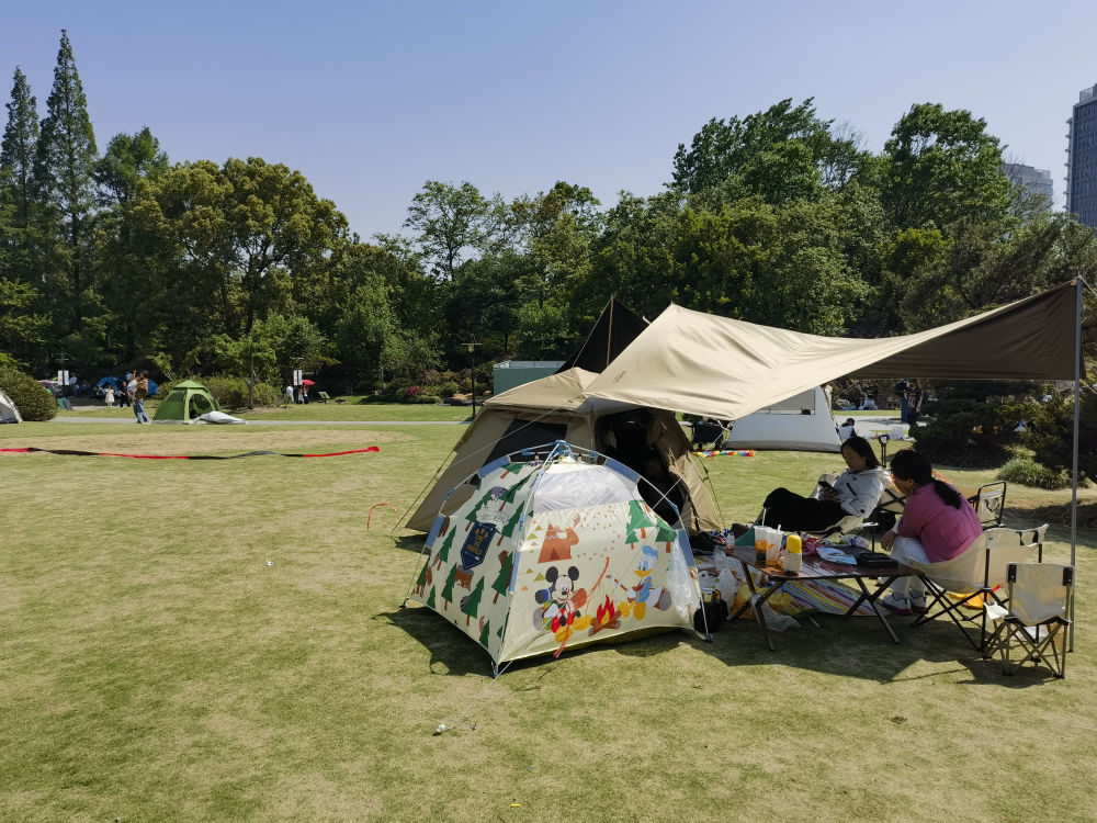 也有许多人没有“轧闹猛”,而是选择相对舒缓的休闲活动。上海市民李屹霖和朋友家庭相约,在上海市郊东方绿舟景区内搭起帐篷、架起桌椅、铺开零食,悠闲度假。阳光明媚,满眼绿植,孩子们与航母模型合影,大人们聊着生活中的趣事。尽管东方绿舟景区迎来大批游客,3家度假酒店假日已满房,但开阔的园区让人们有充足的空间活动,得到充分放松。