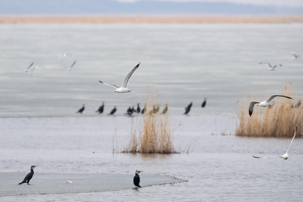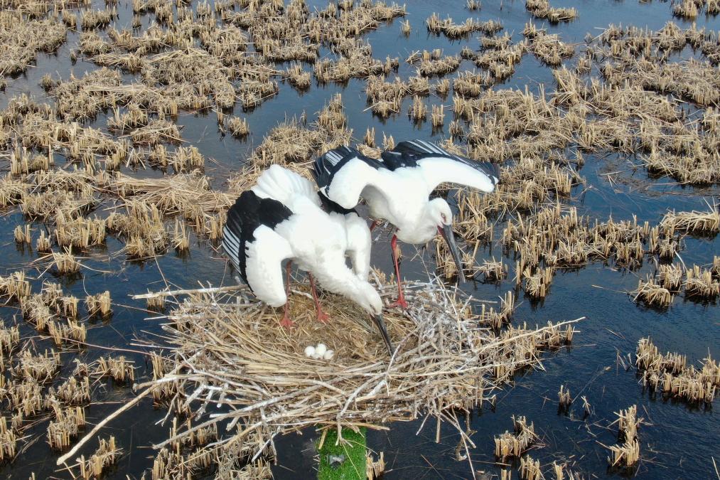 这是4月1日在黑龙江省鸡西市拍摄的兴凯湖国家级自然保护区内的候鸟。新华社记者 谢剑飞 摄