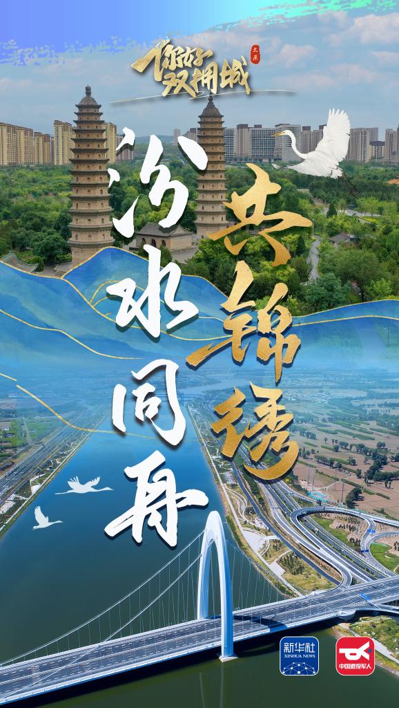 汾水悠悠见证军民情深,巍巍双塔铭刻鱼水同心。