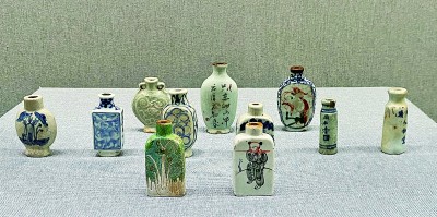 各式各样的精美药瓶摆满展台。本报记者田呢摄