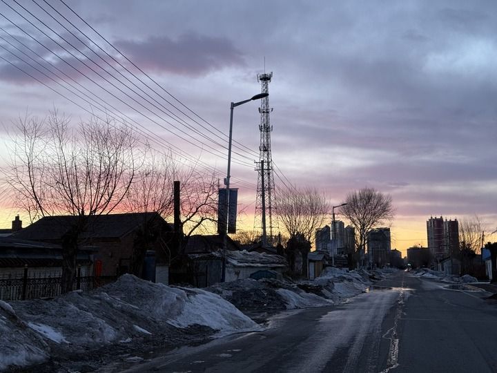 在哈尔滨,中央大街闻名遐迩,被誉为“万国建筑博物馆”。在黑河,也有一条中央步行街。早在19世纪,中俄边境贸易繁荣,俄式美学逐渐渗透于城市肌理。尖顶、雕花、圆拱窗,色彩饱和度极高的墙面,在蓝天白云的映衬下更加绚丽,金属质感的路灯则增添了几分冷冽与浪漫。