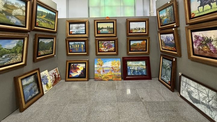 位于黑河市大黑河岛的中俄油画城展出很多俄罗斯油画(3月21日摄)。