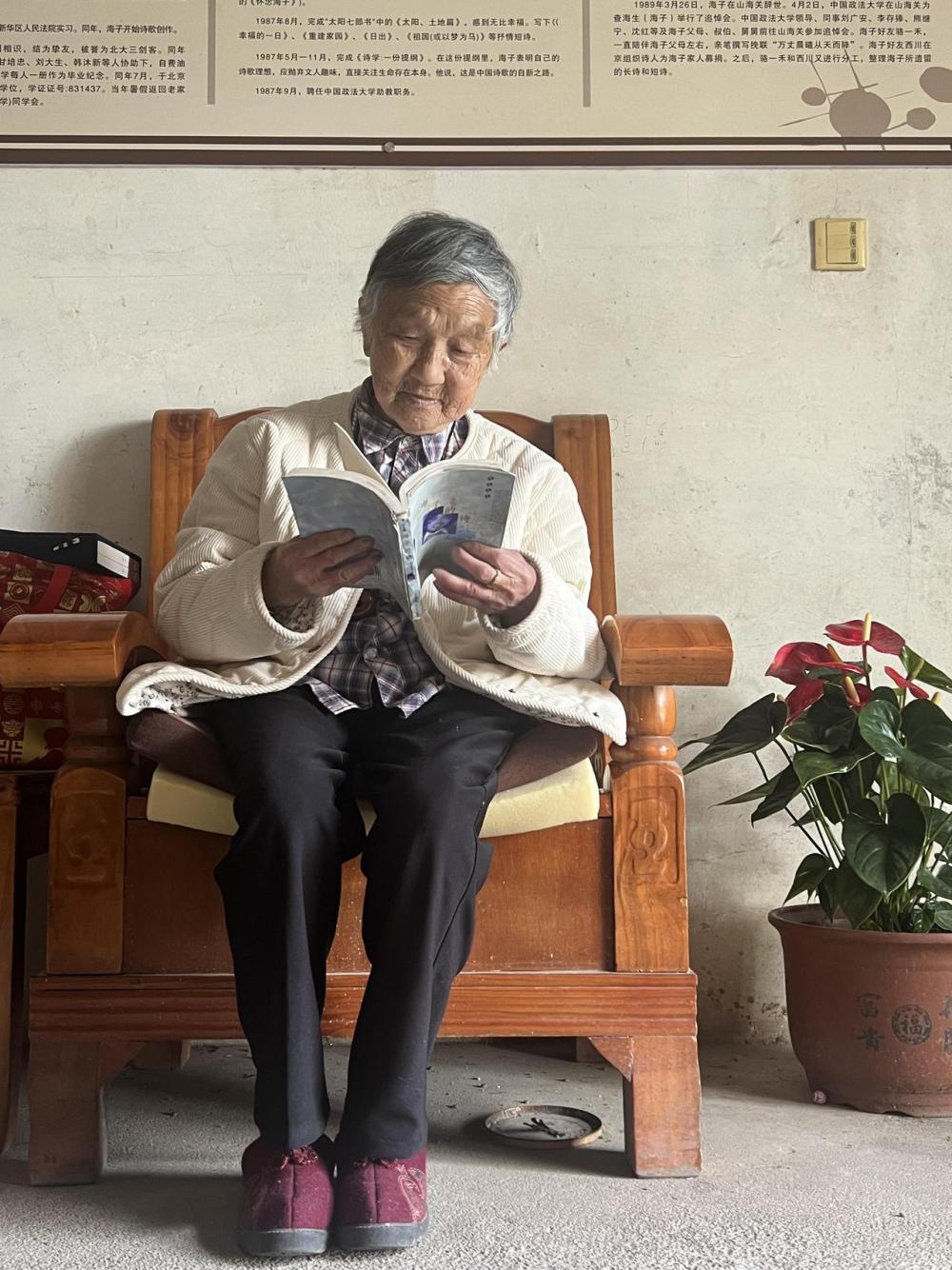 海子母亲操采菊在阅读《海子的诗》。戴威摄