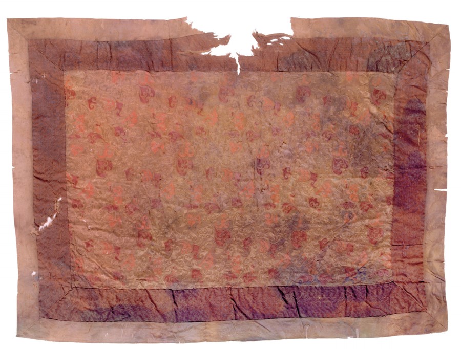 据了解,绮地“乘云绣”坐垫长100厘米、宽74厘米,出土于马王堆一号墓,墓主是长沙国丞相利苍之妻辛追。和绮地“乘云绣”坐垫一起出土、且形制相似的还有长87.5厘米、宽65厘米的绢地“乘云绣”枕巾,此两物均出土于辛追墓北边厢。