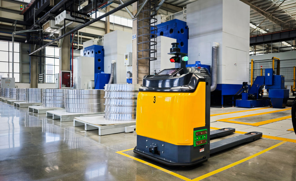 2025年5月19日在洛轴智能工厂拍摄的自动导向运输车(AGV)。