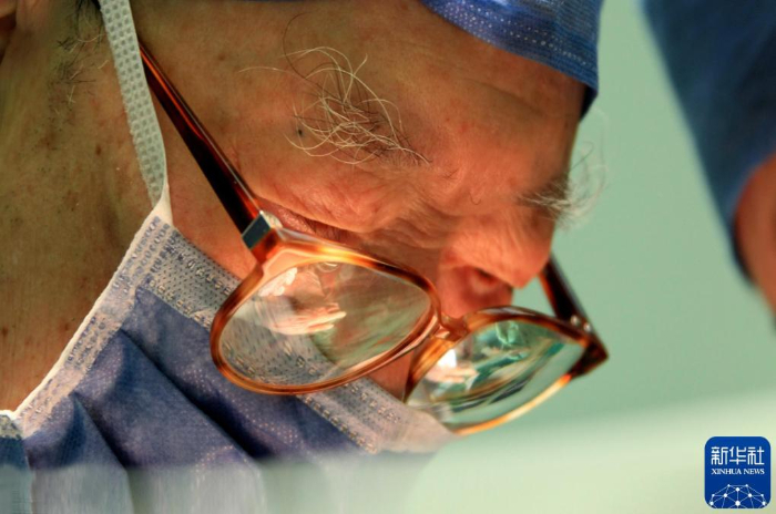 2011年4月13日,吴孟超戴着高度老花镜在手术台上。新华社记者 王建民 摄