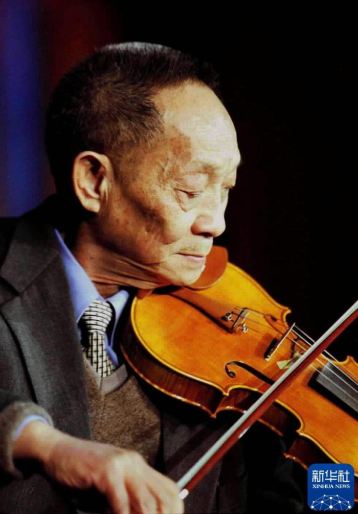 2001年2月,“科学在中国”晚会在京举行,袁隆平奏起由已故地质学家李四光作于1921年的小提琴曲《行路难》。 新华社记者 赵迎新 摄