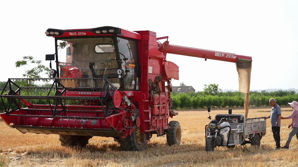 在山西省运城市盐湖区西姚村,农户正在装运新收割的小麦。(兰立强 摄)