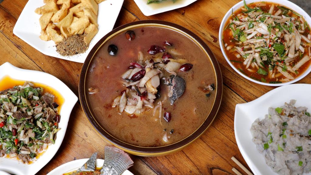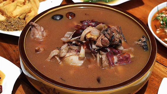 人们精选鸡刺根、小红蒜、茴香根等数十味药根食材,配以土鸡、排骨文火慢炖成汤。
