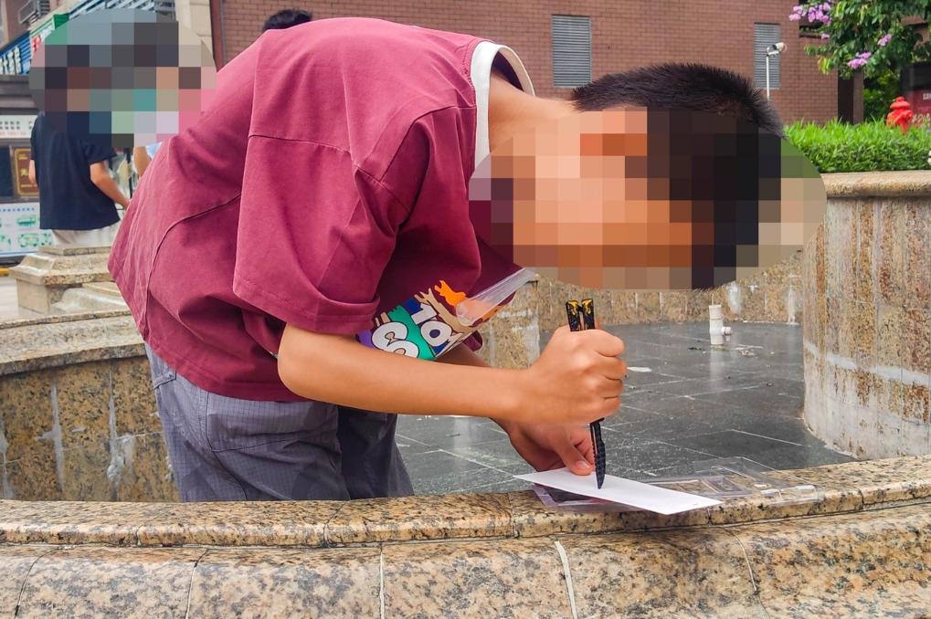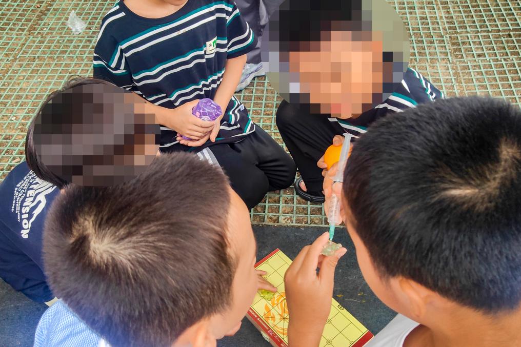 5月27日,在广西南宁市一小区外,学生们放学后聚在一起玩“捏捏乐”玩具。