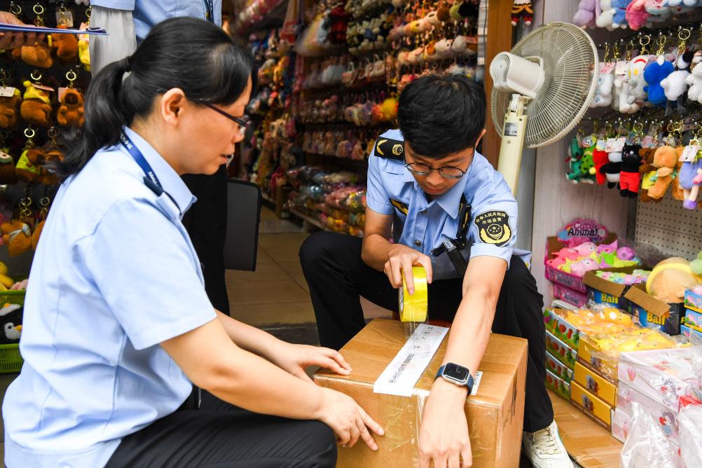 5月27日,广西南宁市兴宁区市场监督管理局的工作人员对含有注射器的“三无”“捏捏乐”玩具进行封存。