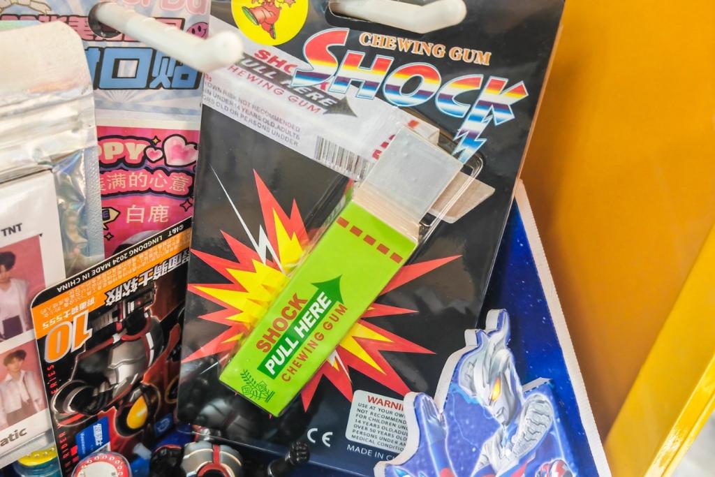 这是5月13日在广西南宁市西乡塘区一小学校外的小卖部里拍摄的具有电击功能的玩具。