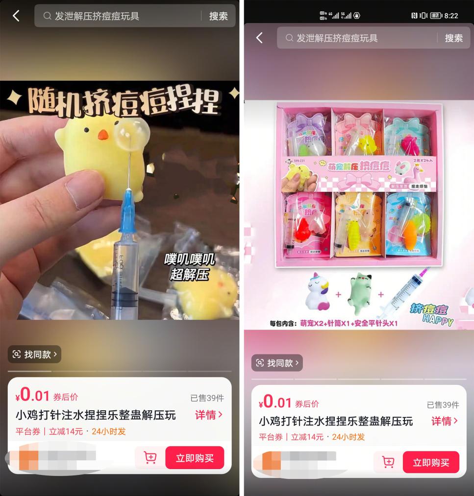 这是在某电商平台,记者发现有店铺销售含有注射器的“捏捏乐”玩具。
