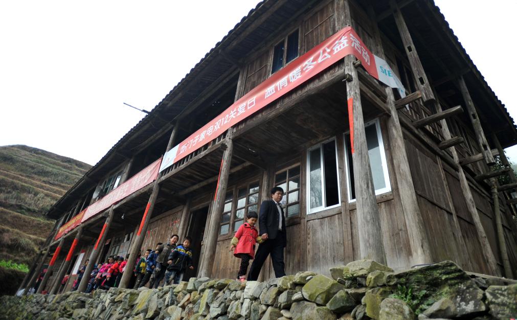 余启贵是广西桂林市龙胜各族自治县龙脊镇江柳村翁江小学唯一的老师。翁江小学位于大山深处,四周梯田环绕,通往山外的道路在山间弯曲穿行。从余启贵的家到翁江小学约有4公里的路程,需要翻越一个山坳才能到达学校所在的寨子。