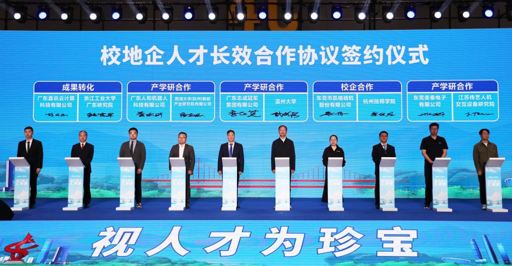 4月19日,招聘会现场举行校地企人才长效合作协议签约仪式。新华社记者 黄国保 摄