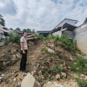 2024年6月24日清晨6时许,三河村遭受大暴雨,田景富接到螺蛳湾组村民紧急电话:“后山的泥巴被水冲着在往下垮!”