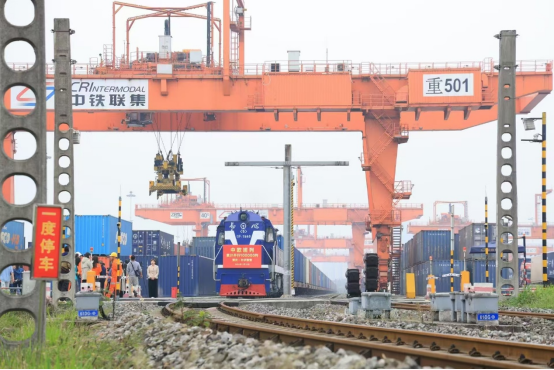 中欧班列从重庆铁路集装箱中心站缓缓驶出