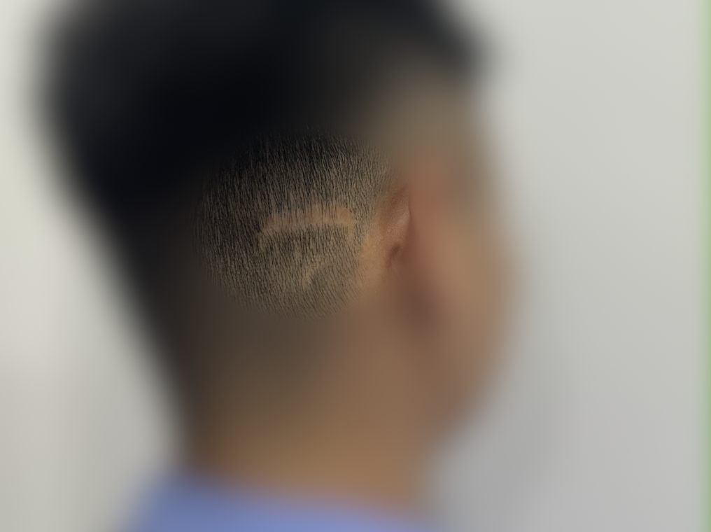 俊豪右肘植入钢钉处的疤痕。新华社发
