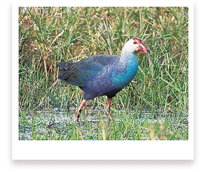 “这是我最喜欢的一种水鸟。”曾向武告诉记者,紫水鸡是湿地留鸟,生活在湿地植物水葱和附近的稻田里。它们的羽毛蓝紫相间,并带有闪光的绿色,非常漂亮,被誉为“最美水鸟”。