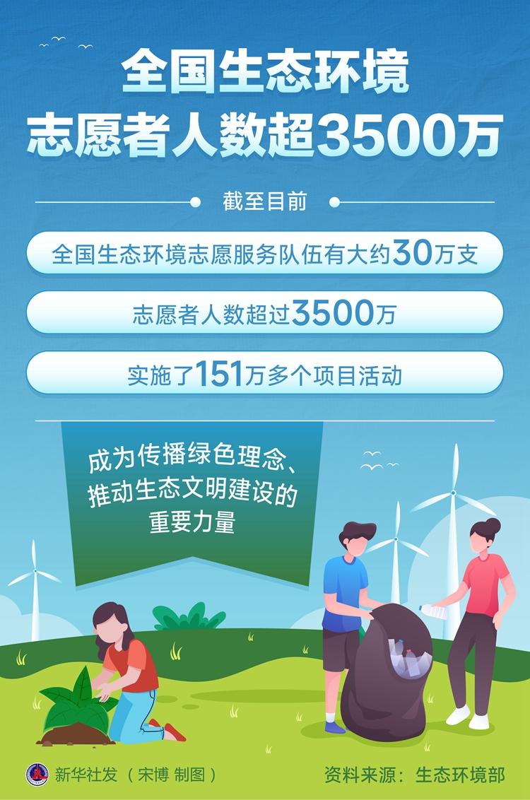 新华社北京6月25日电(记者 高敬)截至目前,全国生态环境志愿服务队伍有大约30万支,志愿者人数超过3500万,实施了151万多个项目活动,成为传播绿色理念、推动生态文明建设的重要力量。