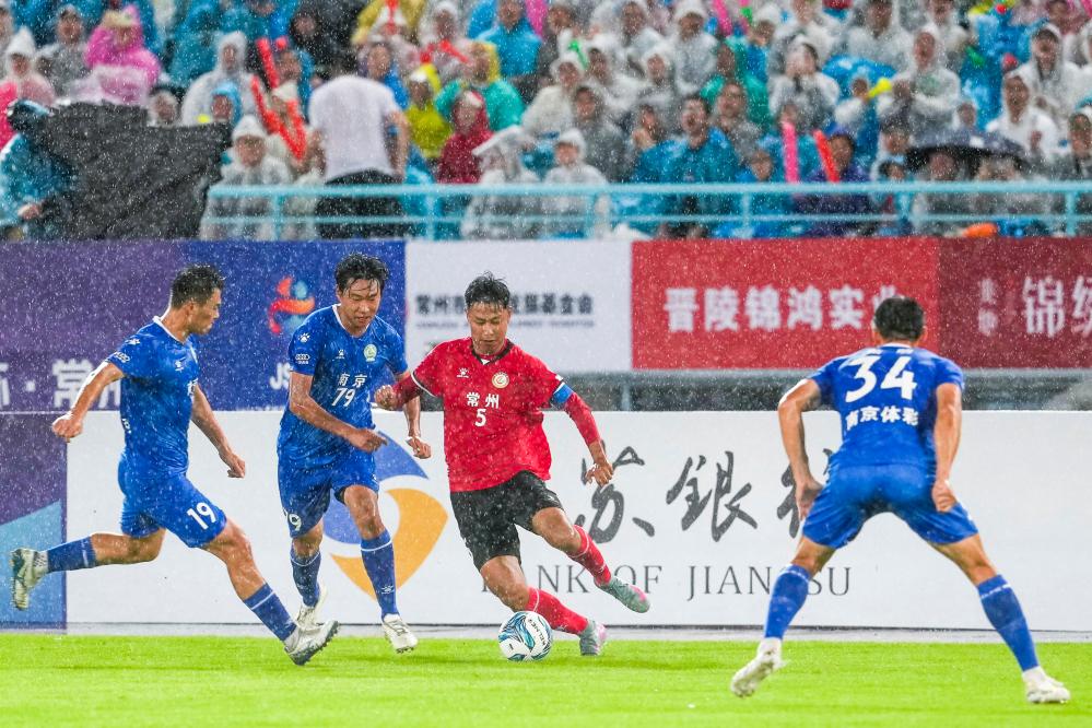 6月21日,在江苏省常州市举行的2025江苏省城市足球联赛第五轮比赛中,常州队主场0比4不敌南京队。新华社记者 李博 摄