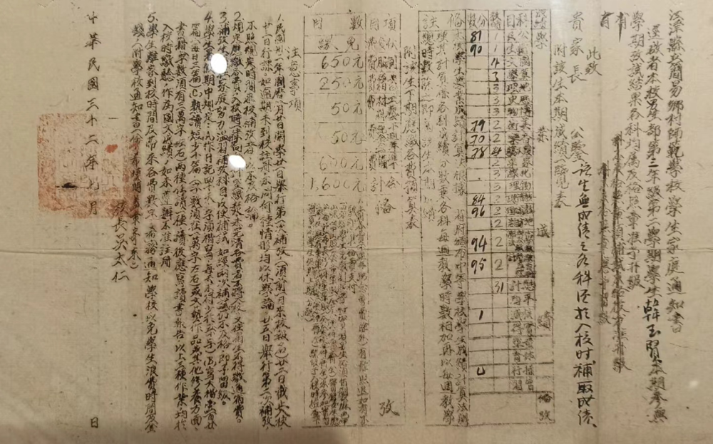 中师陈列馆里保存的1943年江津县立简易乡村师范学校家庭通知书。