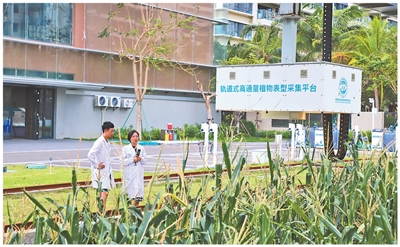 在位于海南三亚的试验田里,农业科研工作者使用轨道式高通量植物表型采集平台收集玉米性状信息。董 旭摄(人民视觉)