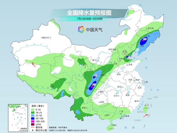 后天,东北地区东部和中南部、华北东部、西北地区东部、四川盆地西部、云南西部和南部等地部分地区有中到大雨,局地有暴雨或大暴雨。