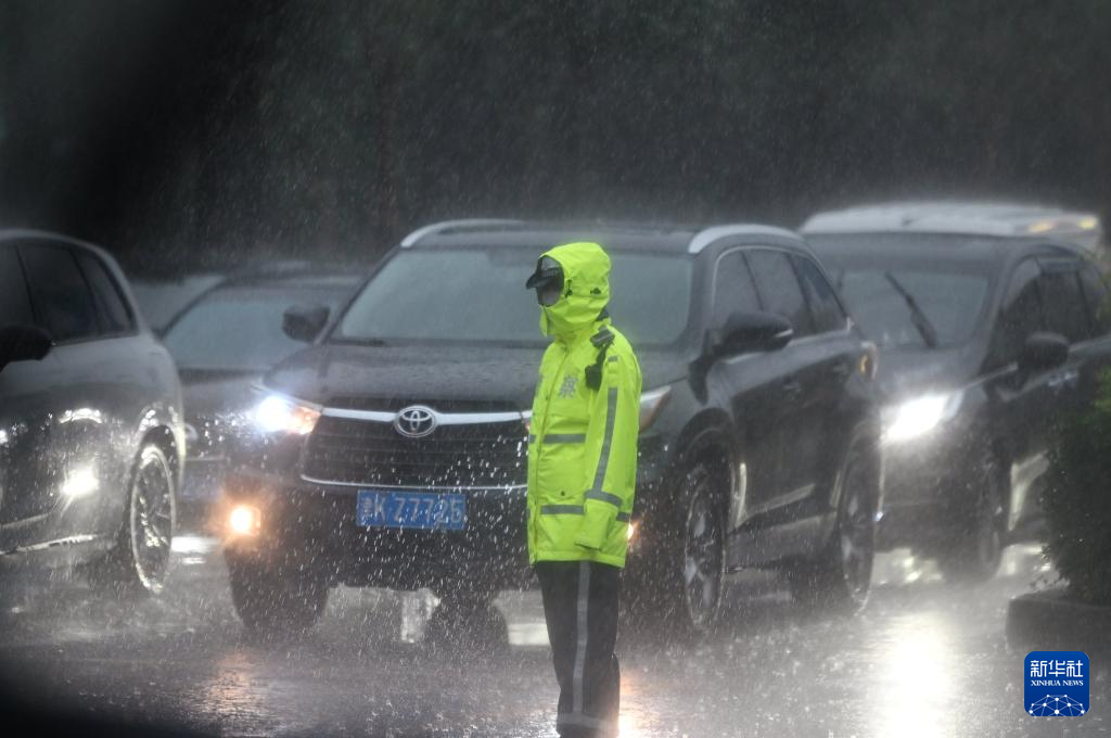 7月2日,交警在雨中执勤。新华社记者 李然 摄