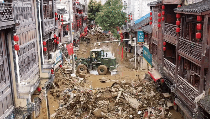 近日,贵州省黔东南苗族侗族自治州榕江县遭遇特大洪水,县城多处低洼地带被淹没。