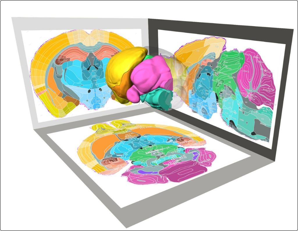 经过十年攻关,中国科学院院士、海南大学生物医学工程学院教授骆清铭、华中科技大学教授龚辉及美国加州大学洛杉矶分校教授董红卫带领的研究团队,成功获取了包括14000张冠状切面、11400张矢状切面和9000张水平切面在内的亚微米分辨的小鼠全脑细胞构筑图像。基于海量切片数据,研究团队划分并标注了916个脑区的三维视角可调地图,其中236个全新发现的脑亚区揭示了未知的神经连接网络。