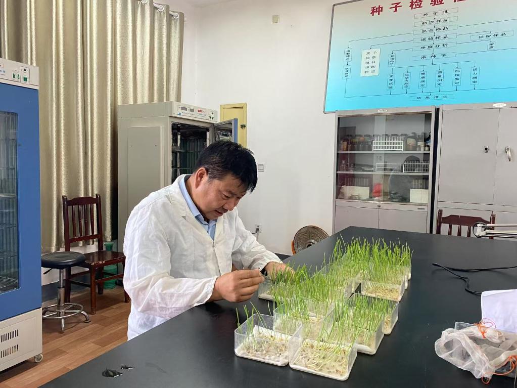 咸阳市三原县种子管理站站长杨茂胜正在做实验。(受访者供图)