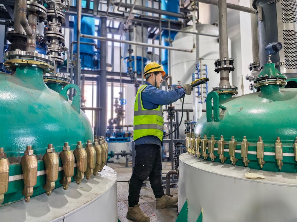 工人在陕西咸阳(彬州)高端能源化工园区安装设备(2025年2月16日摄)。新华社记者张京品 摄
