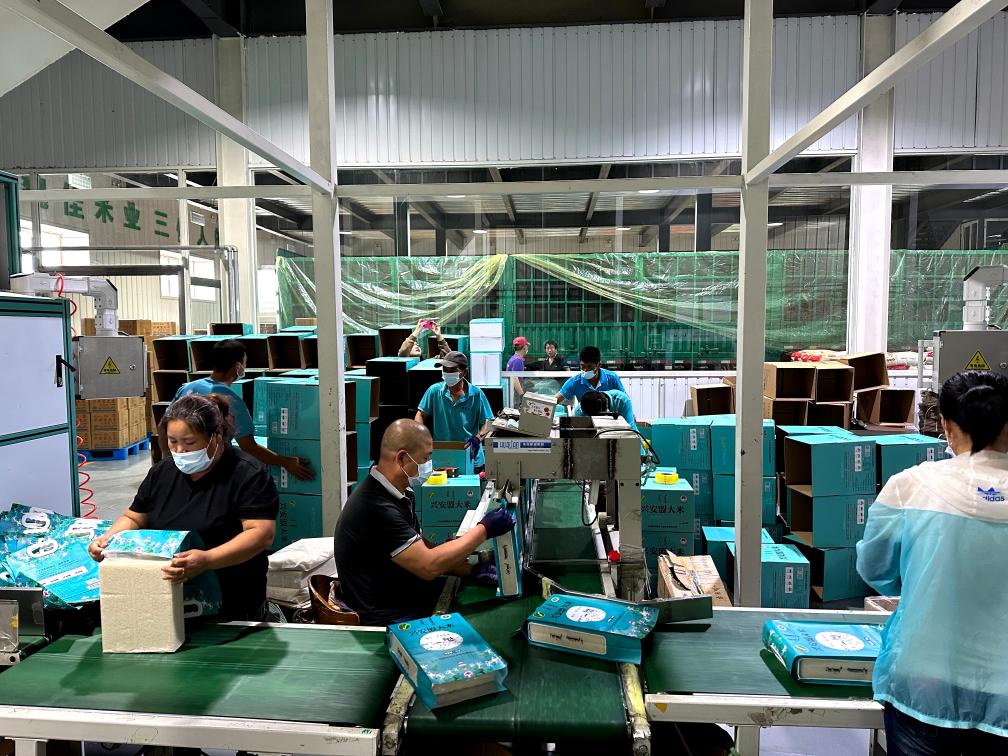 内蒙古扎赉特旗的村民在稻米专业合作社加工包装新米。(赵艳红摄)