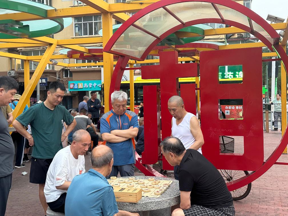 近日,记者来到位于黑龙江省哈尔滨市道里区的一个以象棋为主题的口袋公园。小公园里有各种健身器材,有以棋子为元素搭建的休闲亭、石鼓、石凳、棋盘等,两位大爷正在石桌前饶有兴致地下象棋,旁边围着一群人聚精会神地“观战”。