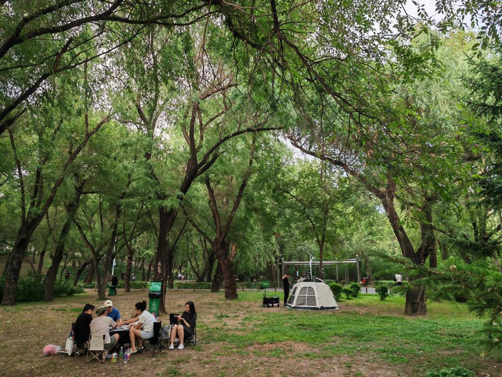 记者傍晚走进位于哈尔滨市的顾乡公园,看见公示栏上写着“开放共享区域分为帐篷野餐(冷餐)区、休闲演出区、儿童游乐区、健身运动区”。绿荫环绕,清风徐徐吹来,二十多摄氏度的气温让人倍感舒适。有人在打羽毛球,有人在帐篷旁野餐,小朋友们嬉笑玩耍,一旁的家长举起手机记录下美好时光。
