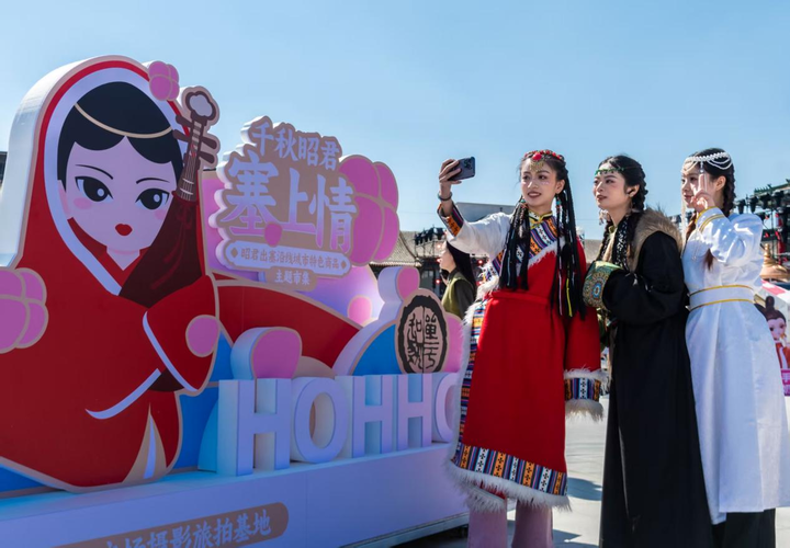 游客们在塞上老街历史文化街区内拍摄民族风写真。呼和浩特市玉泉区融媒体中心供图