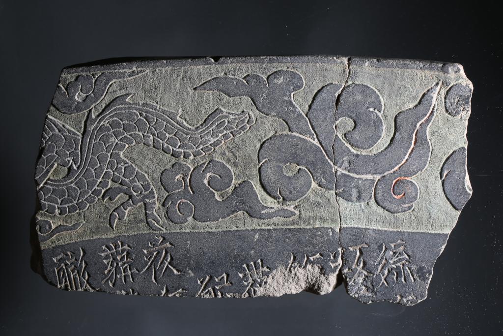 西夏文彩绘描金云龙纹灰砂岩残碑。(银川西夏陵区管理处供图)