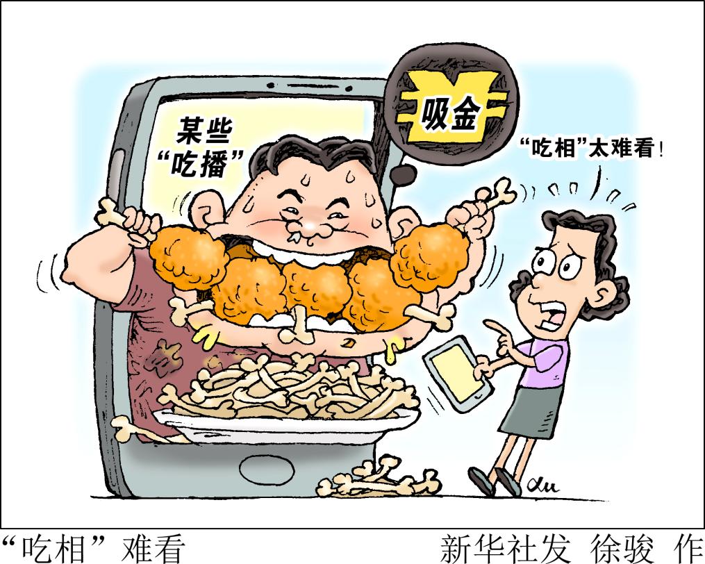 直播什么东西都敢吃、吃相丑态百出的极端做法,玷污人类社会的文明素养,糟蹋中国传统饮食文化,破坏清明清朗的网络氛围,这股网络歪风绝不能放任,必须坚决刹住!