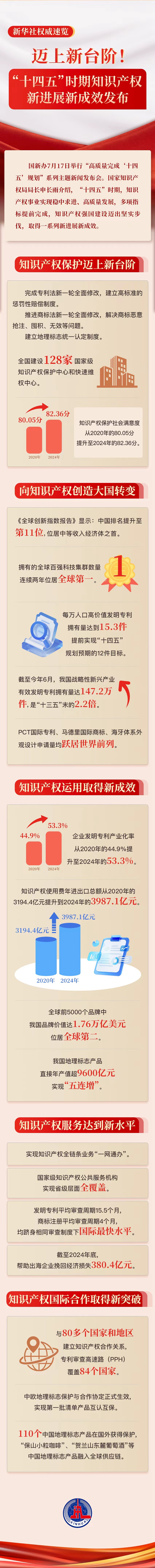 新华社权威速览丨迈上新台阶!“十四五”时期知识产权新进展新成效发布-新华网