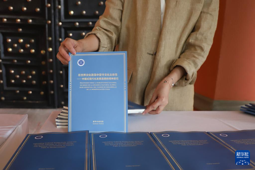 这是7月18日在墨西哥首都墨西哥城举办的“红厅论坛·中墨文明交流互鉴对话会”上拍摄的《在世界文化激荡中坚守文化主体性——中国式现代化发展道路的精神基石》智库报告。新华社发(弗朗西斯科·卡涅多摄)