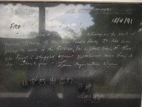 这是琼·尤恩的外孙女莎娜在1991年回访位于安徽省宣城市泾县云岭镇的新四军军部旧址时留下的感言,已被镌刻在新四军军部(司令部)旧址内。感言中写道:“感谢让我们有机会参观云岭新四军纪念馆。能短暂追随那些多年前为反抗压迫而战斗的英雄足迹,我们深感荣幸。谢谢。” 新华社记者 郭晨 摄