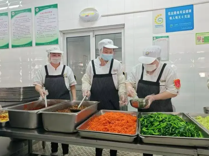 学校食堂“妈妈岗”员工准备学生饭餐 邵鲁文 摄