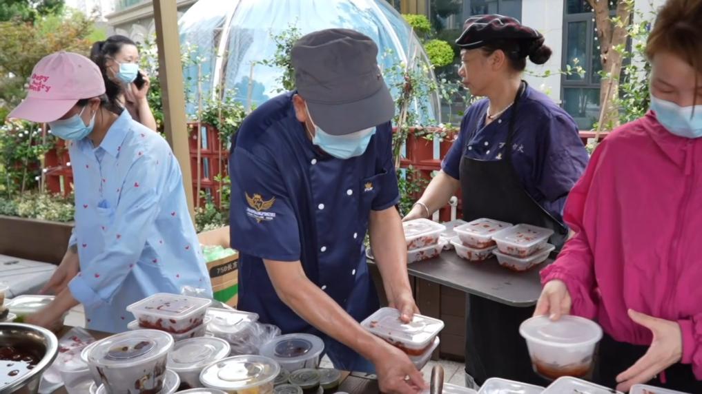 下午三点,在位于浙江湖州市吴兴区龙泉街道祥和社区旁的一家饭店门前,市民朋友们已经排起了长队。店员们将刚出锅的菜品陆续摆上户外的长桌,十几道菜品色香味俱全,路过的市民纷纷加入到选购的队伍中来。