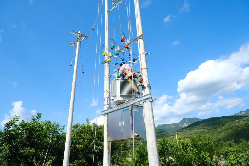 下营镇石炮沟村电力工人正在抢修变压器。新华社记者 张宇琪 摄