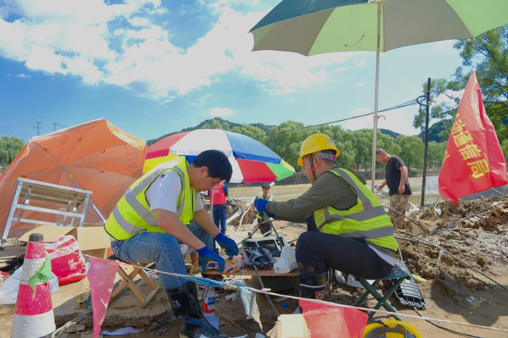中国电信的工作人员正在现场工作。新华社记者 张宇琪 摄