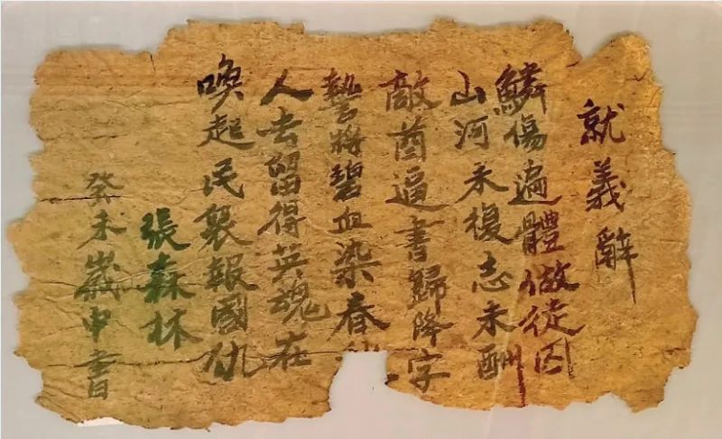 河北冉庄地道战创始人之一张森林当年手书的遗诗《就义辞》。(摄于中国共产党历史展览馆)图片来源:中国军网